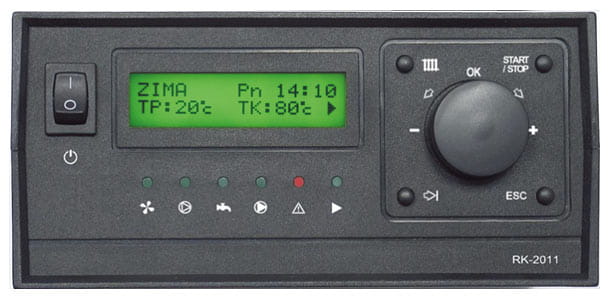 Uniwersalny regulator temperatury przeznaczony do kotłów na paliwo stałe z wyświetlaczem tekstowym LCD. Regulator wyposażony został w programowany dobowo termostat temperatury pokojowej oraz temperatury wody użytkowej. Regulator steruje wentylatorem nadmuchu i pompą obiegu CO, posiada także możliwość obsługi pompy ładującej zasobnik CWU oraz pompy cyrkulacyjnej.